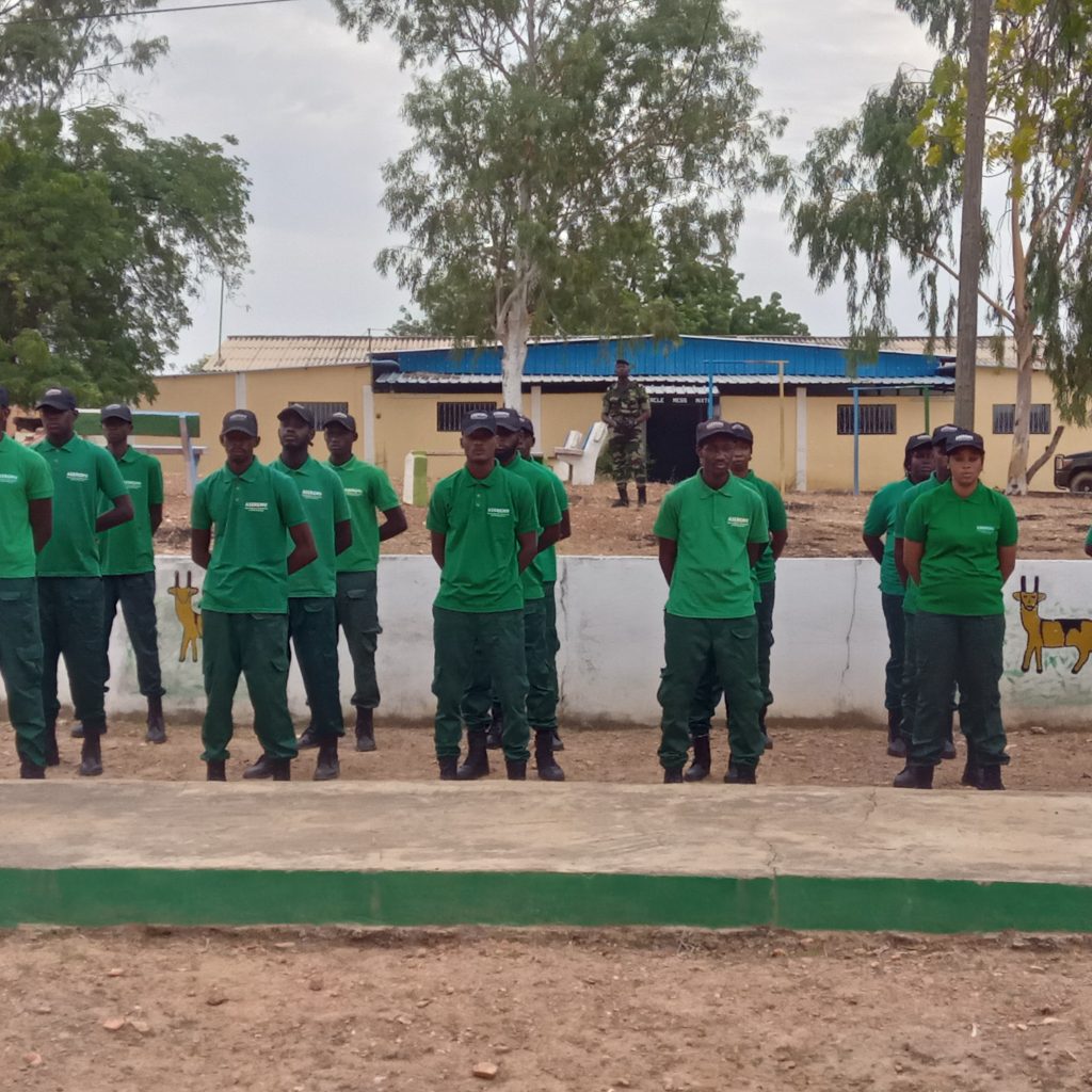 A 8h 30 minutes, le Commandant des Troupes, le Capitaine Bil Jepherson Malou de l’Escadron de Surveillance et d’Intervention est arrivé, passant en revue ses hommes.