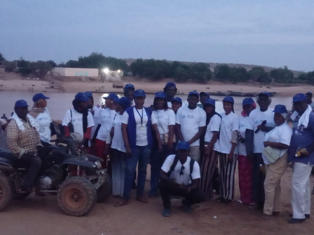 Dans la Commune de Bakel, madame Charlotte Dje, Coordonnatrice de l’ONUDC à Kédougou, ce lundi 8 décembre 2025, à partir de 16 heures, était d’abord à la berge surplombée par les bâtiments de la Mairie, de la Police des Frontières et du service des Douanes avec des Chefs religieux (un Curé Abbé Marcel Keita et l’Imam d’Aroundou Mamadou Bathily) des membres des organisations de la Société Civile, des Badiénou Gox, des jeunes hommes et femmes, des femmes leaders (Sokhna Faty Thiam)…