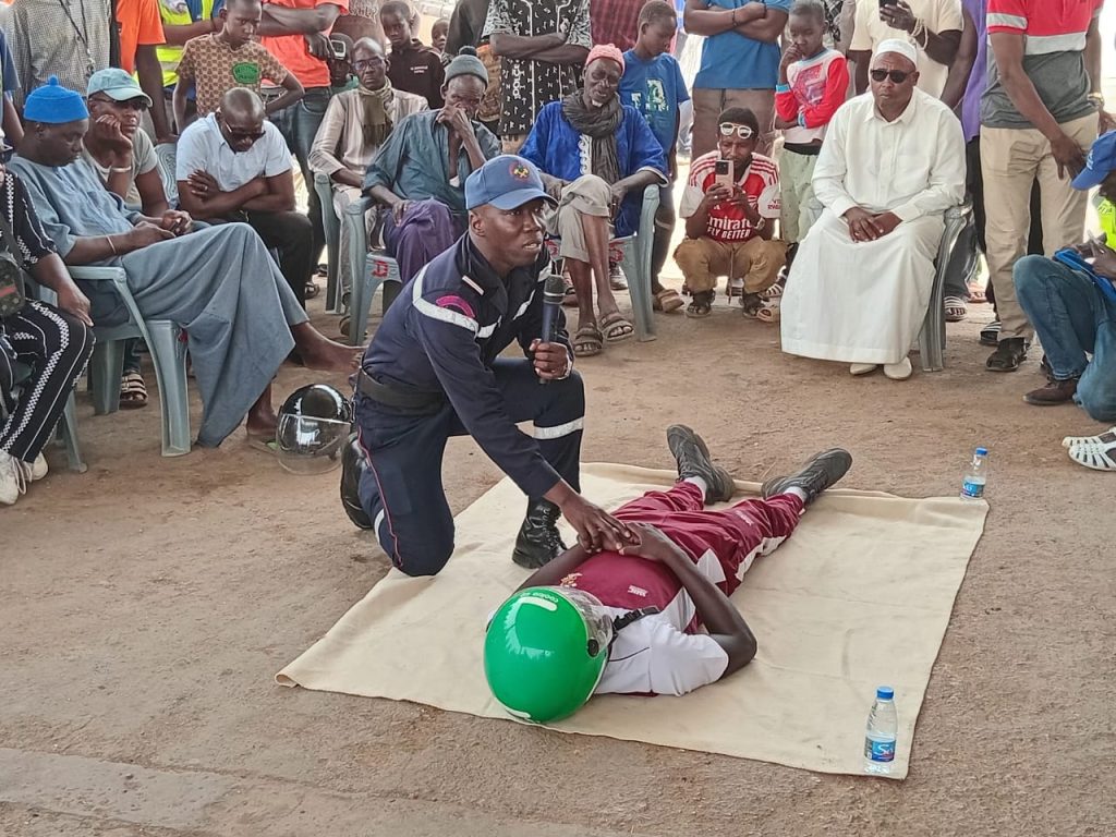 Puis l’adjudant des Sapeurs-pompiers de la 63ème Compagnie d’Incendie et de Secours de Bakel, El Hadj Oumar Coly a montré le côté pratique d’une intervention en cas d’accident. Ainsi, avec un cobaye imitant un accidenté, il a parlé de la protection des lieux, de l’alerte, de la localisation, des gestes à effectuer, des numéros de téléphone à appeler.