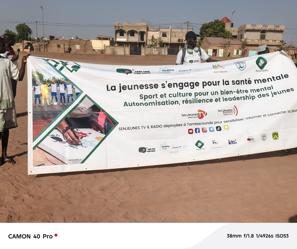 Tamba, 18 avril 2026 (TAMBAACTU1). Sur un terrain sablonneux baigné de soleil, des jeunes tiennent une grande banderole porteuse d’un message fort : « La jeunesse s’engage pour la santé mentale ». À travers cette initiative, sport et culture sont mobilisés comme leviers essentiels pour favoriser le bien-être mental, mais aussi pour renforcer l’autonomisation, la résilience et le leadership des jeunes.